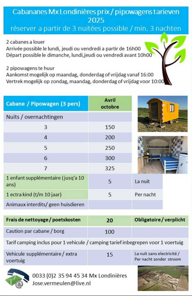 Daarnaast zijn er 2 pipowagens beschikbaar. Normaal geldt een minimumverhuur van 3 nachten, maar speciaal voor dit zijspanweekend kan dit uitzonderlijk voor 2 nachten: