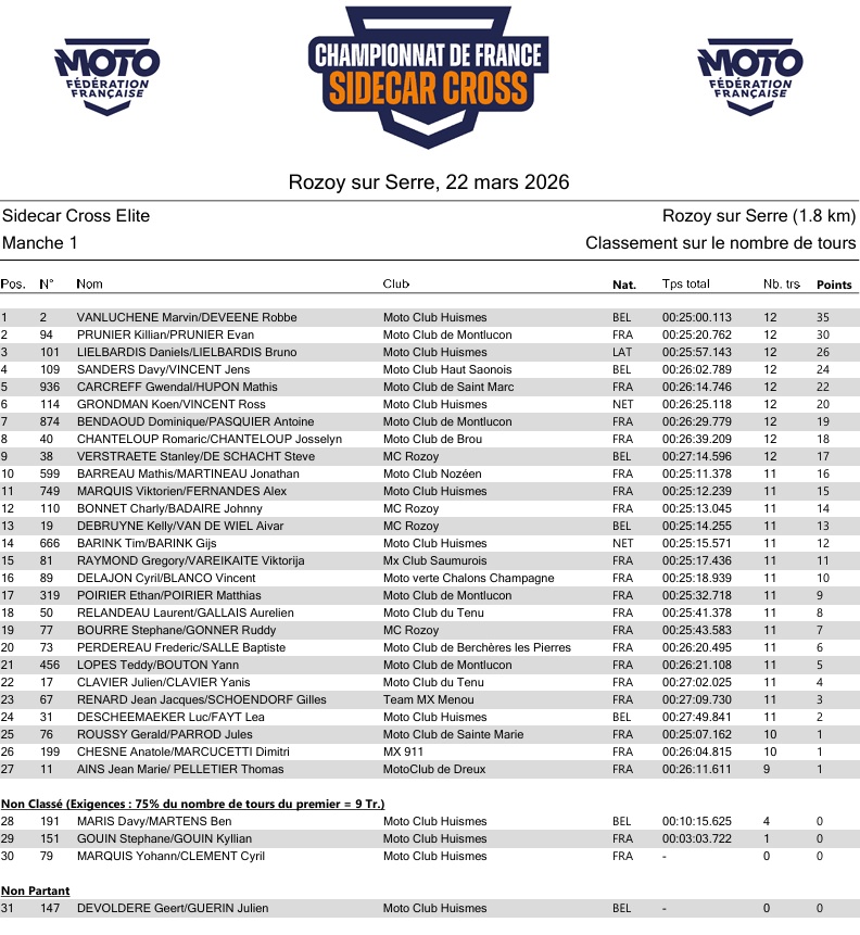 In Rozoy-sur-Serre kwamen maar liefst 30 teams aan de start die zich eerst moesten kwalificeren voor de reeksen.