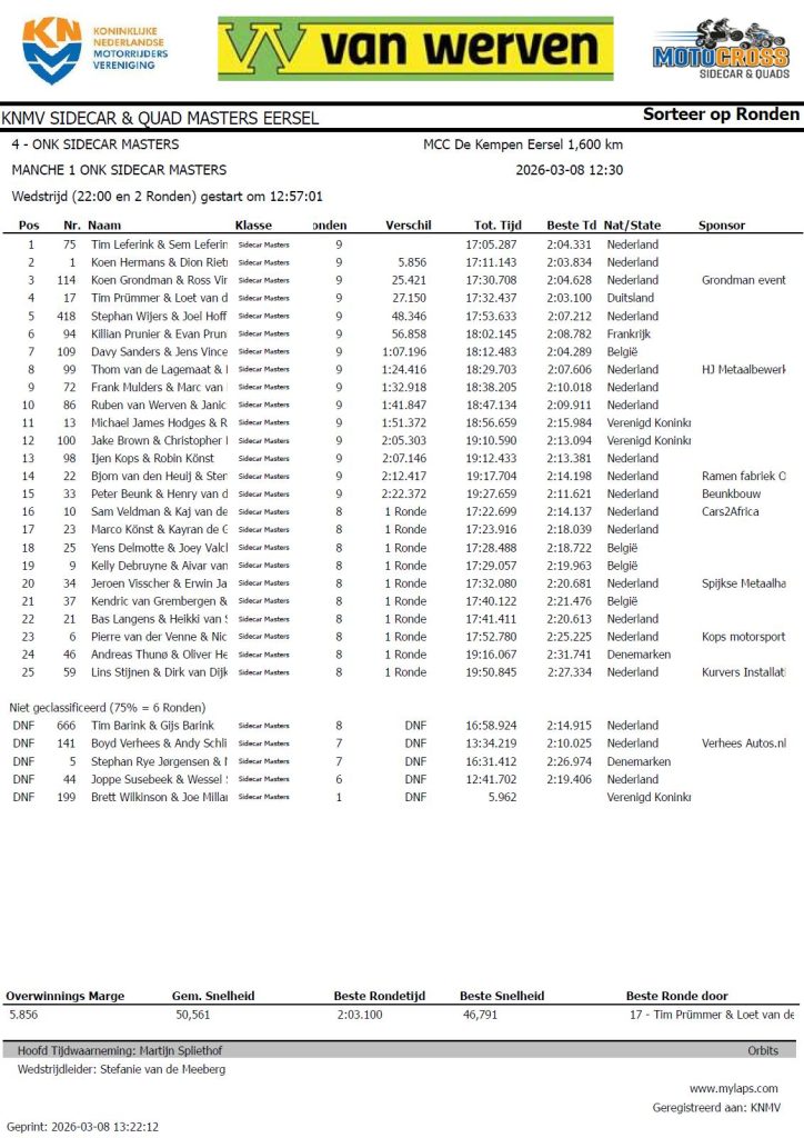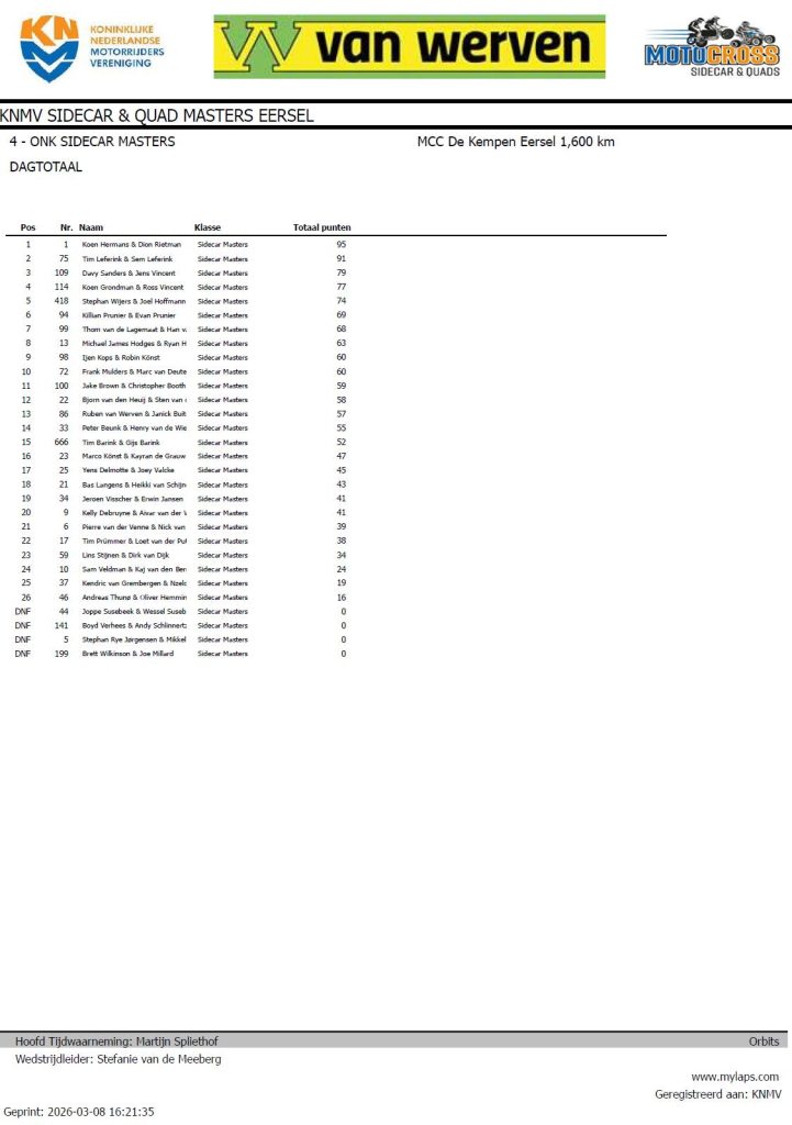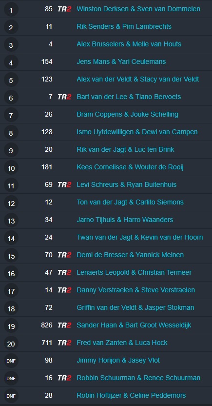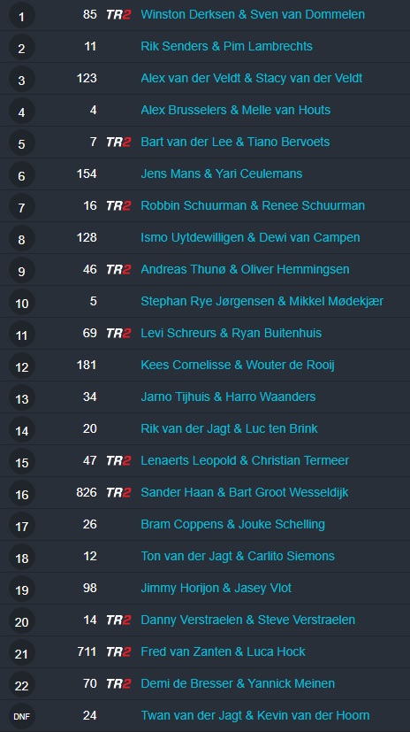 De eindoverwinning van deze spannende eerste wedstrijd van het seizoen ging naar Koen Hermans – Dion Rietman. Tim en Sem Leferink werden tweede in het dagklassement, terwijl Davy Sanders – Jens Vincent het podium compleet maakten.
